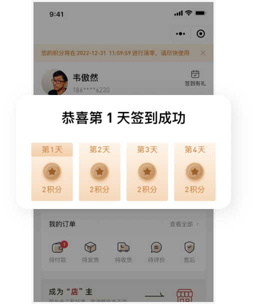 店鋪注冊會員后送積分