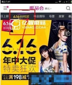 1、打開(kāi)軟件,在首頁(yè),點(diǎn)擊616年中特賣按鈕,進(jìn)入唯品會(huì)616年中大促活動(dòng)詳情界面,可以參加一元搶iphone,也可以簽到領(lǐng)現(xiàn)金的喲,