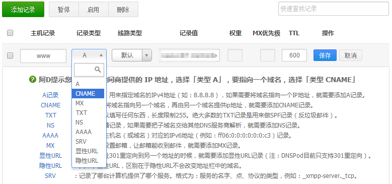 以前有A記錄的解析,需要將原來的A記錄進行刪除