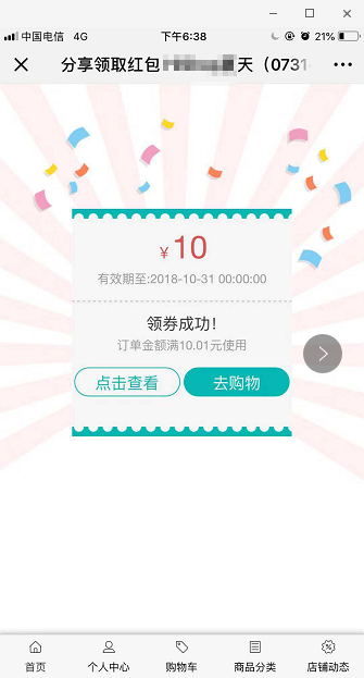 5.用戶交易成功,訂單交易20元以上,就可以分享優(yōu)惠券