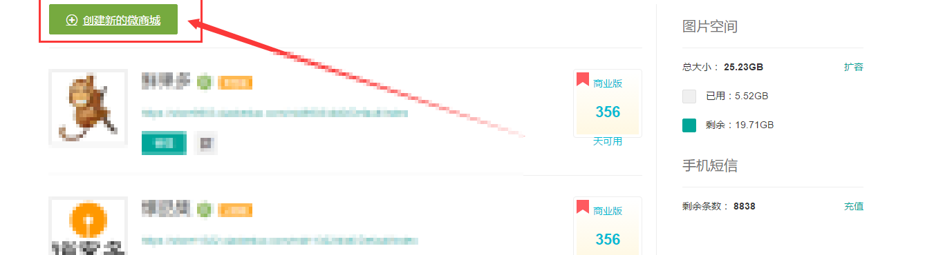 2、創(chuàng)建微商城店鋪,如下圖所示: