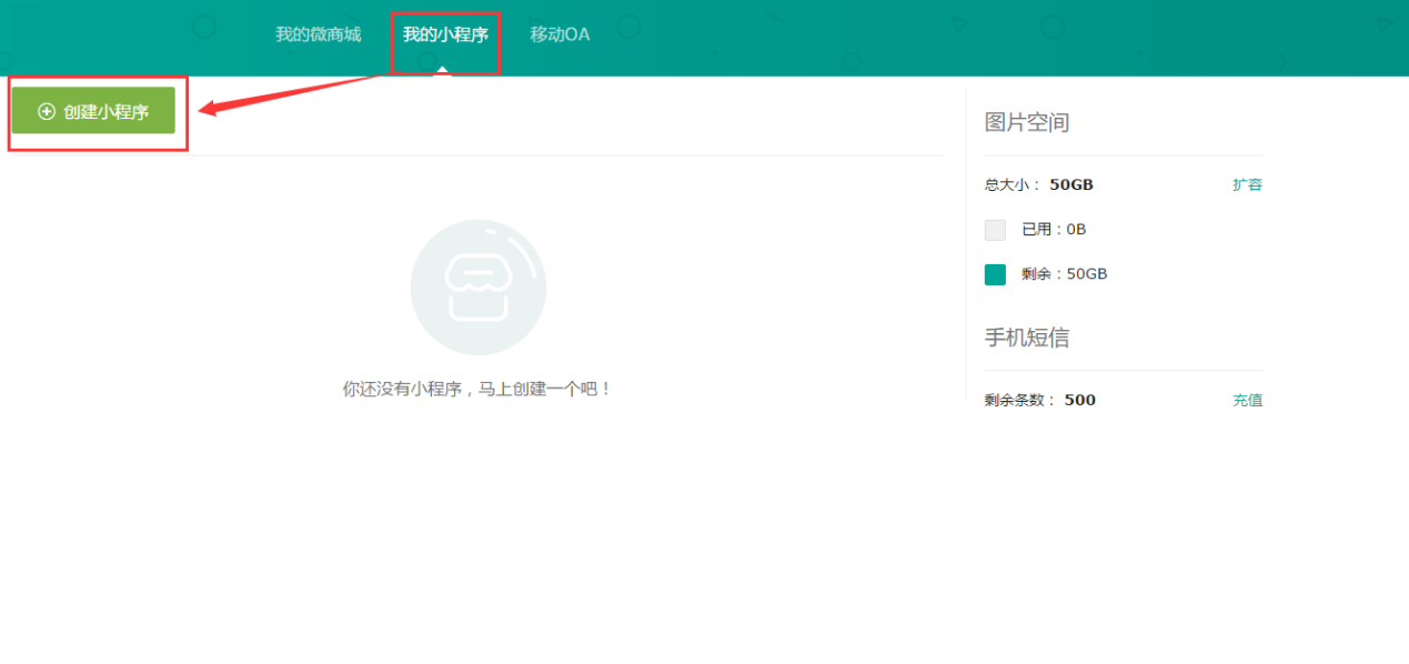 1、在商家中心--我的小程序--創(chuàng)建小程序,如下圖所示: