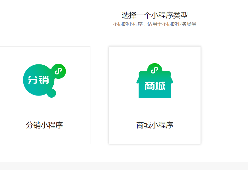 2、選擇您所創(chuàng)建的小程序類型,如下圖所示:
