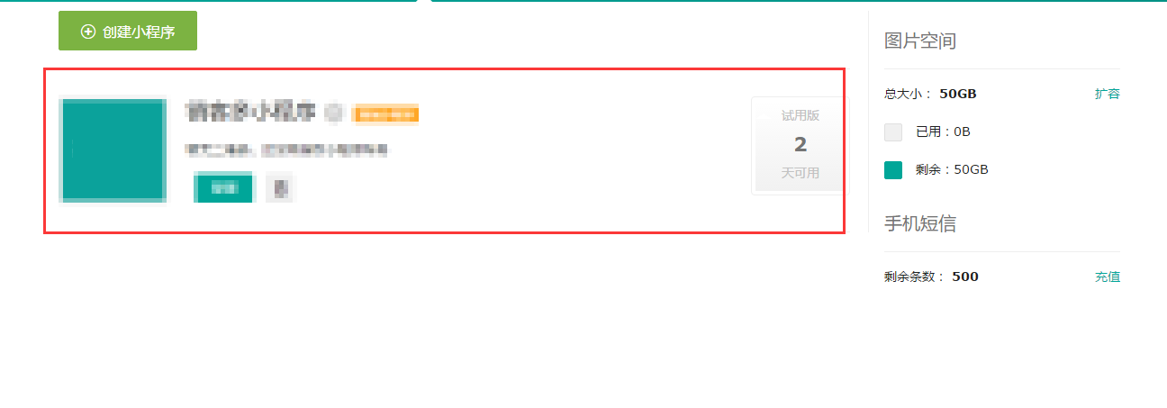 4、小程序創(chuàng)建成功。點(diǎn)擊管理進(jìn)入小程序管理后臺(tái)操作即可,如下圖所示: