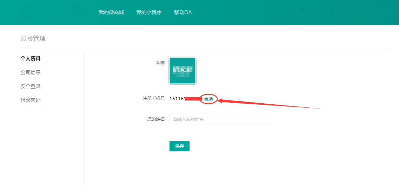 2、在個(gè)人資料當(dāng)中,更換您所要變更的手機(jī)號(hào),如下圖所示: