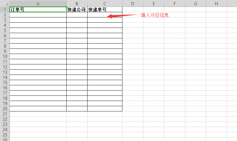 (2)在模板文件中填入您的訂單號,快遞公司,快遞單號。