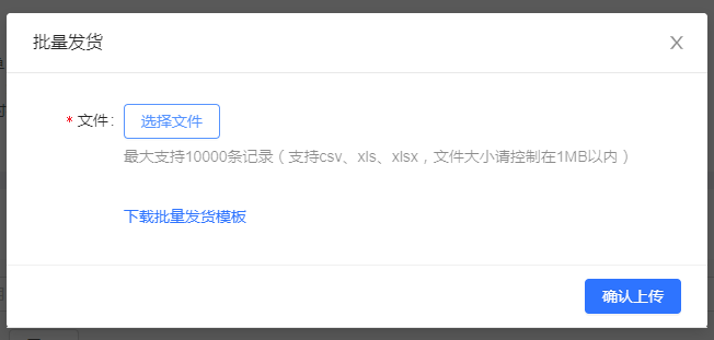 通過新云店鋪后臺-訂單-發(fā)貨管理-批量發(fā)貨功能進行批量發(fā)貨,操作批量發(fā)貨需上傳包含訂單ID、快遞公司、快遞單號三個字段的csv、xls、xlsx文件。