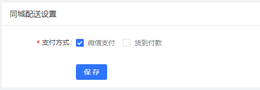 啟用“同城配送”開關(guān)前,需要完成同城配送的各配置項,并點擊保存。