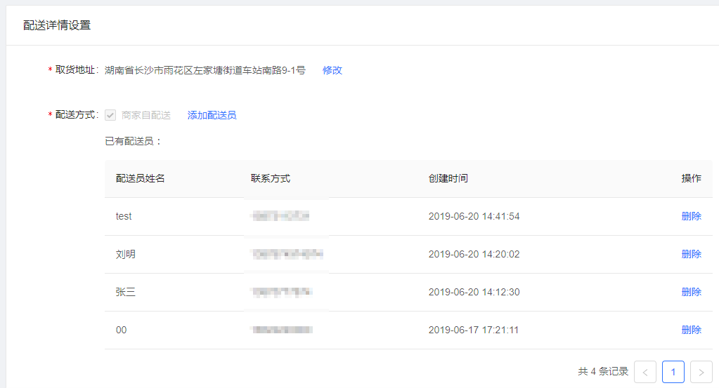 (2)選擇取貨地址,并添加配送員,下單時需要從所添加的配送員中選擇。