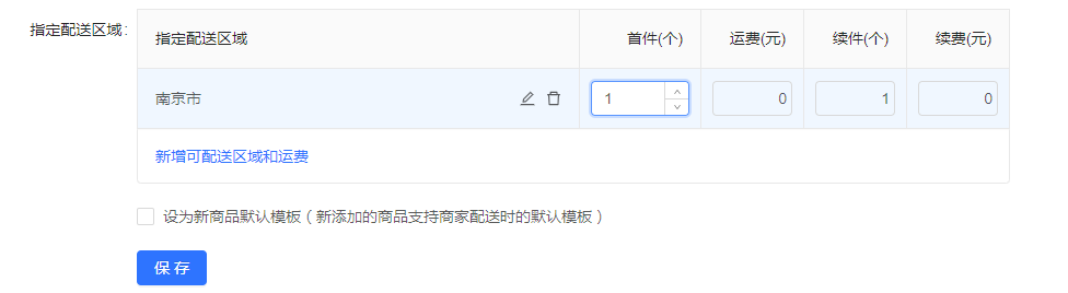 3.填寫默認(rèn)運(yùn)費(fèi):除指定配送區(qū)域外,其他區(qū)域運(yùn)費(fèi)一律以默認(rèn)運(yùn)費(fèi)來計(jì)算;