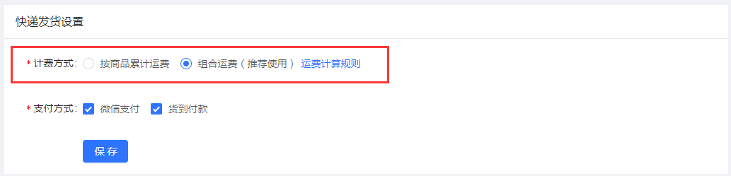 計(jì)費(fèi)方式包含兩種:按商品累加運(yùn)費(fèi)和組合運(yùn)費(fèi)。