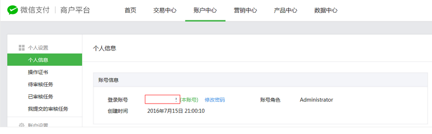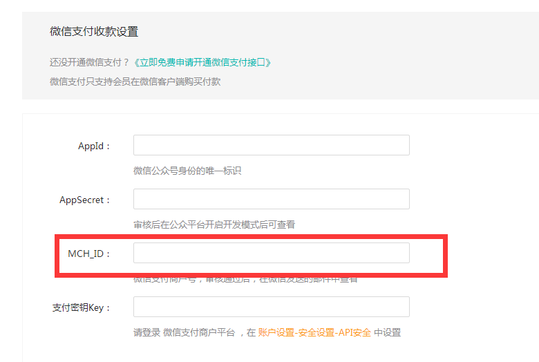 【MCH_ID】:登錄微信商戶平臺點擊賬戶中心-個人設(shè)置,將微信支付賬號復(fù)制到MCH_ID內(nèi)