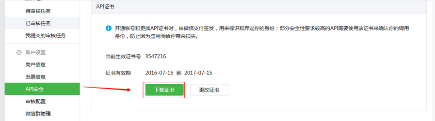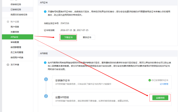 進(jìn)入賬戶中心-API安全-下載證書-設(shè)置秘鑰(32位)