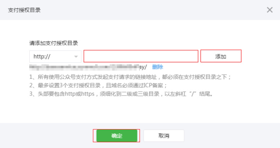把http://member.yunmof.com/wxpay/輸入到輸入框,點擊添加-確定【注:此處可以添加3個鏈接】