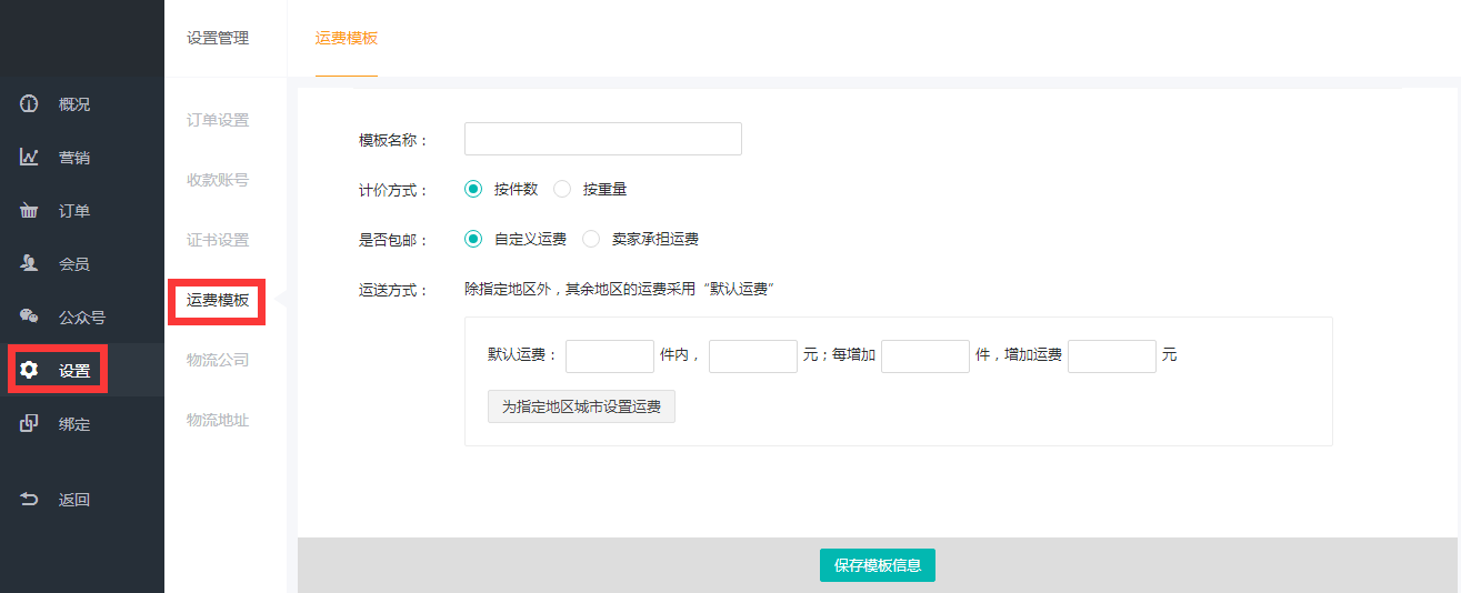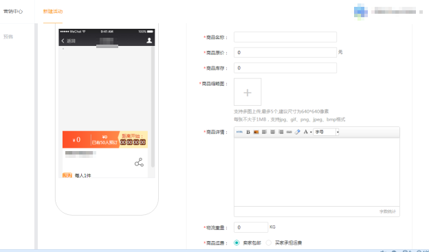 商品運費:可以設(shè)置成賣家包郵或者是買家承擔(dān)運費。