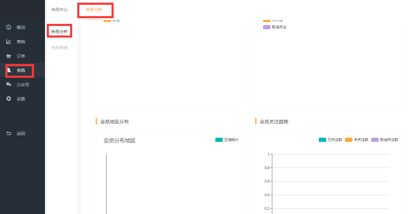 所有會員:可根據(jù)關(guān)注會員、未關(guān)注會員、取消關(guān)注會員查詢會員;