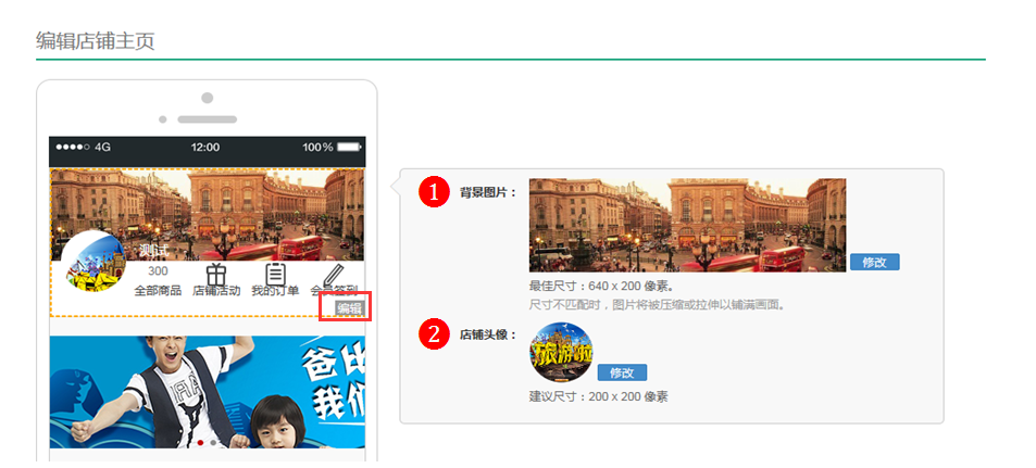 ② 店鋪頭像修改:建議尺寸:200 x 200 像素