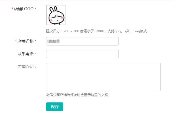店鋪介紹:微信分享店鋪給好友時會顯示這里的文案,不會直接在前臺顯示