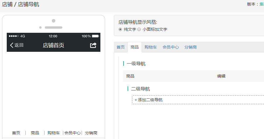 ① 店鋪導航顯示風格: 純文字、小圖標加文字任選其一;