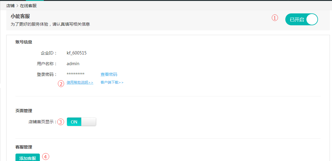 ④ 添加客服:點擊添加新客服再更新信息即可。