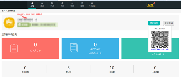 訪問店鋪:點擊可以顯示店鋪二維碼,復(fù)制店鋪鏈接或者是直接在電腦訪問商城