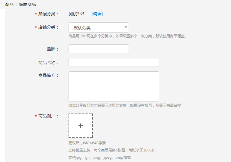 商品簡介:微信分享給好友時會顯示這里的文案,如果沒有填寫,則顯示商品名稱;