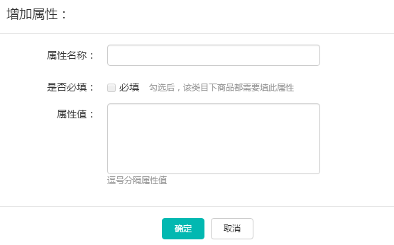 商品屬性:商品的附屬屬性,可以選擇添加。(注:如果有勾選必填,則該分類下的所有商品都有這個屬性)
