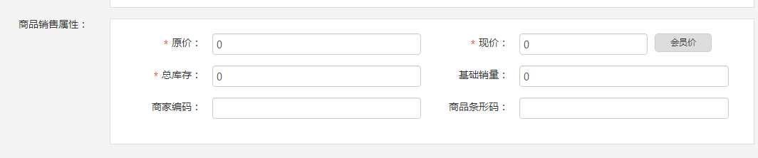 商品規(guī)格:如果是添加的自定義分類的話,在添加的自定義分類下可以添加規(guī)格值,添加好規(guī)格值之后填寫價格、庫存等。