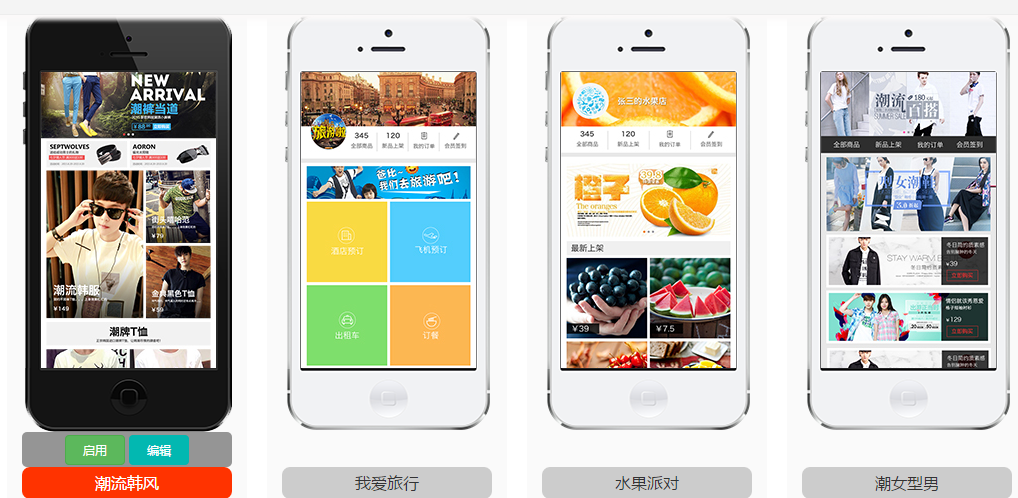 ?、?啟用:點擊啟用將應(yīng)用此套模版作為自己的商城首頁,可以在此套模板的基礎(chǔ)上進(jìn)行二次編輯。