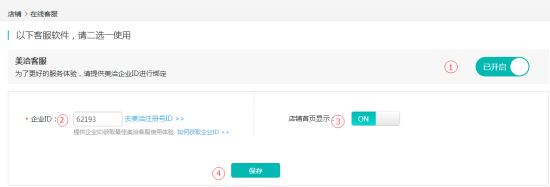 注:商城可以使用的有美洽客服和小能客服,這兩者是二選一的