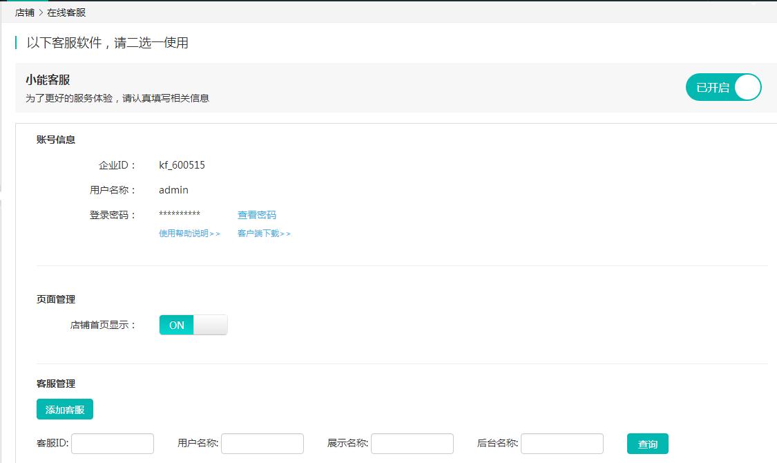 小能在線客服需要配置好企業(yè)id ,可以直接在后臺(tái)下載幫助文檔進(jìn)行操作。