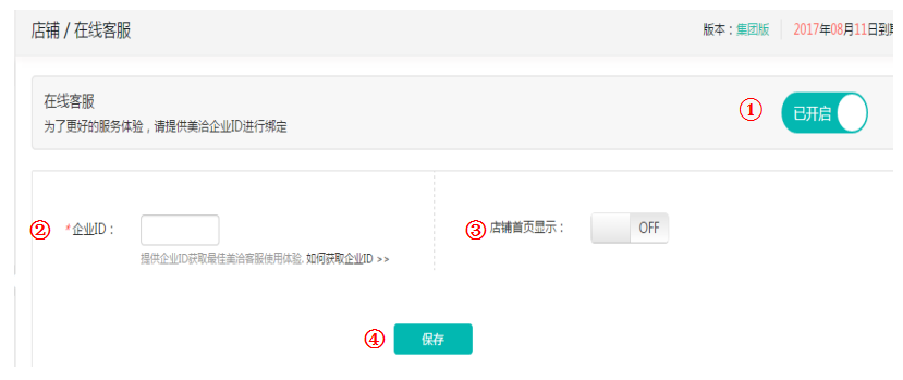 ① 開啟:開啟后使用在線客服的功能。