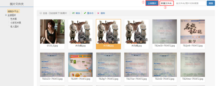 ③ 新建文件夾:新建圖片文件夾,將上傳到圖片庫的圖片分類。