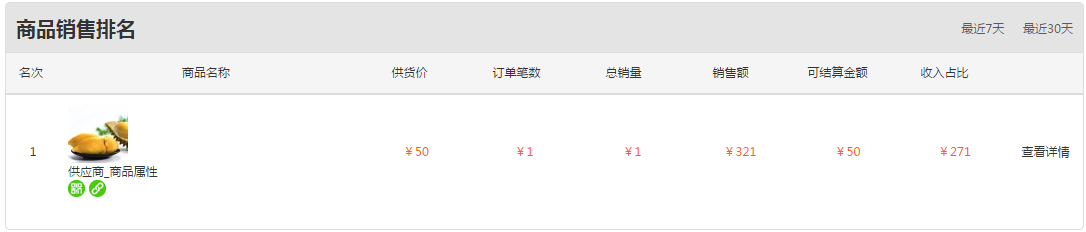 顯示供應(yīng)商的訂單數(shù)據(jù)及商品銷售情況。