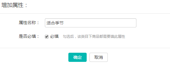 ⑦ 商品屬性:商品的附屬屬性,可以選擇添加。(注:如果有勾選必填,則該分類下的所有商品都有這個屬性)