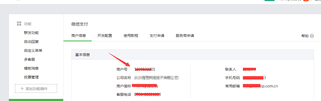 二、復制AppId和AppSecret , MCH_ID 與 Key