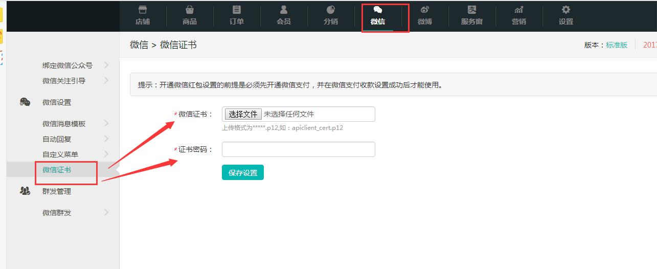 證書下載之后,解壓。商城后臺上傳apiclient_cert.p12