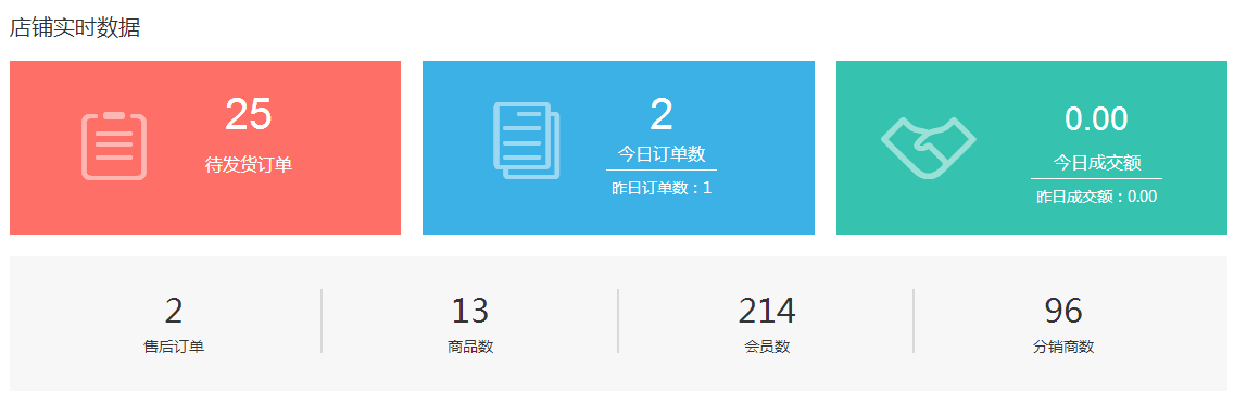 統(tǒng)計(jì)待發(fā)貨訂單、今日訂單、今日成交額、售后訂單等數(shù)據(jù).