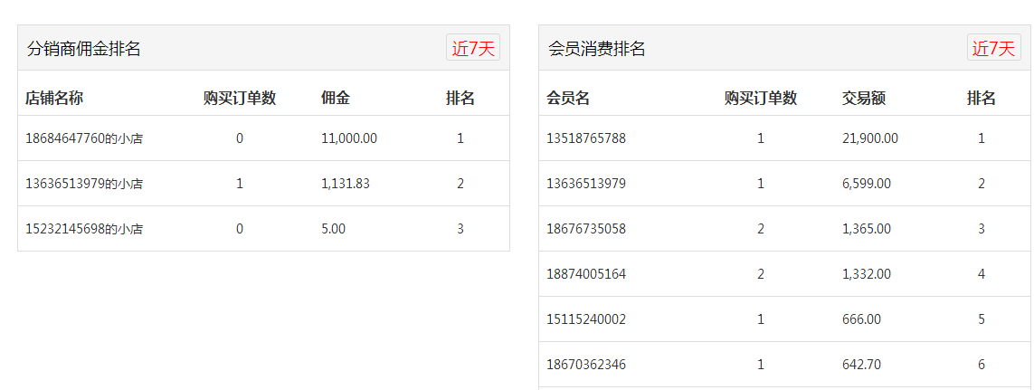 ?1.3 分銷傭金排名和會(huì)員消費(fèi)排名