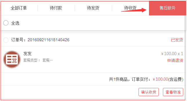⑤ 商城管理員發(fā)貨之后,會員收到貨可以確認收貨或者操作申請退貨。