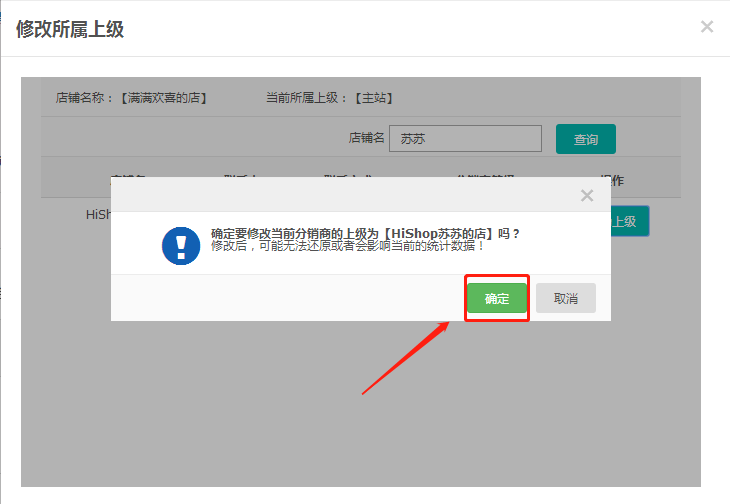 第三步,設(shè)置成功當(dāng)前所屬上級變更成調(diào)整后的店鋪