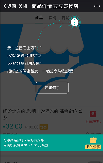 1)設(shè)置分享單個商品至少需要多少位好友支持才可獲得一份獎勵,則當(dāng)分享者將這個活動分享給好友時,好友點擊分享的商品鏈接即核算人數(shù);