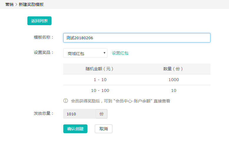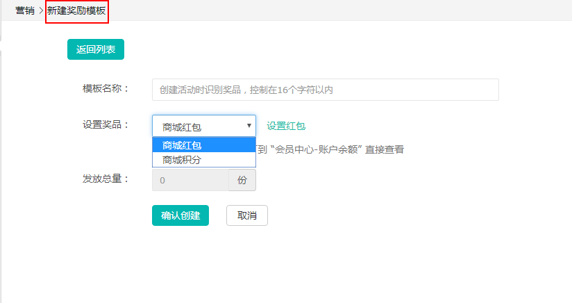 第二步,創(chuàng)建獎勵紅包,以創(chuàng)建商城紅包為例