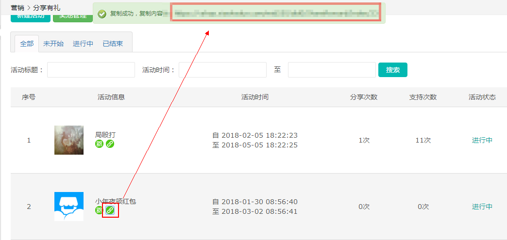 第一步,點擊創(chuàng)建好的活動進(jìn)行分享