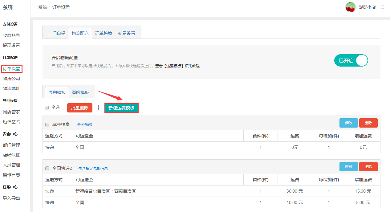 1.新建運(yùn)費(fèi)模板