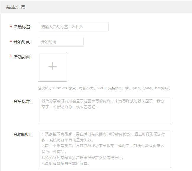 活動(dòng)庫(kù)存:為獨(dú)立庫(kù)存,成交后不會(huì)減少商品的庫(kù)存,建議設(shè)置庫(kù)存數(shù)量根據(jù)實(shí)際庫(kù)存設(shè)置;
