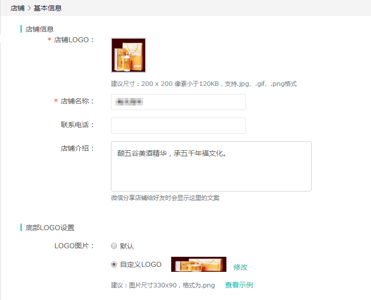 ‚底部logo設置:將自己小程序商城底部版權(quán)顯示的logo在這里上傳,圖片尺寸是330px*90px,格式為png