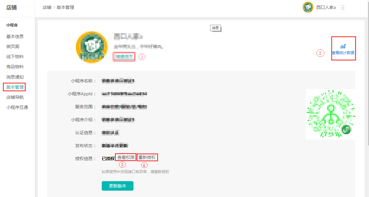 ?、苤匦率跈?quán):如需要重新綁定新的小程序或者需要,點擊此按鈕操作再點擊上傳審核即可;