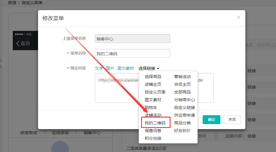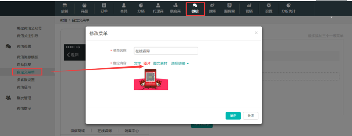 除了美洽和小能以外,也可以在微信---自定義菜單里掛個(gè)微信二維碼,方便客戶咨詢。