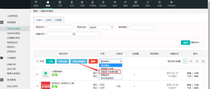 在商品--->出售中的商品--->調(diào)整顯示銷售數(shù)量
